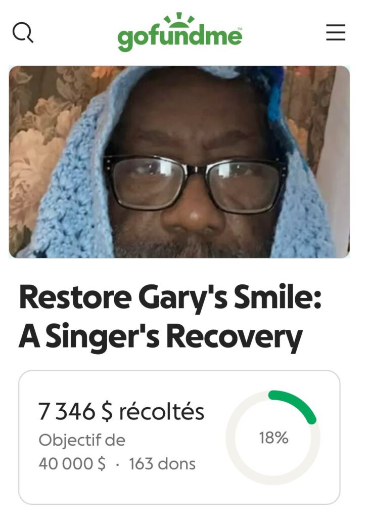 Le 1er mai 2025, Gary lance officiellement une nouvelle collecte GoFundMe de 40 000 dollars. Il précise que son assurance couvre environ 80 % des frais, mais que les 20 % restants représentent une charge lourde. Il confie avoir été amputé du pied gauche, se déplacer avec une prothèse et chercher de l’aide pour « retrouver son sourire détruit par le diabète », tout en souhaitant continuer à servir sa communauté et à faire plaisir à ses fans. Il rappelle que son cas illustre une précarité plus large et cite Ti Manno, Antoine Rossini Jean-Baptiste, disparu en 1985 dans des circonstances comparables. Le 4 mai 2025, lors d’un direct sur Facebook et YouTube animé par le diplomate et créateur de contenus Fernando Estimé, il affirme n’avoir jamais perçu « une gourde » pour certaines chansons interprétées ou produites. Concernant sa démission de Zenglen, il préférait ne pas s’exprimer par respect pour l’équipe et a souligné qu’il pouvait toujours composer et écrire.
