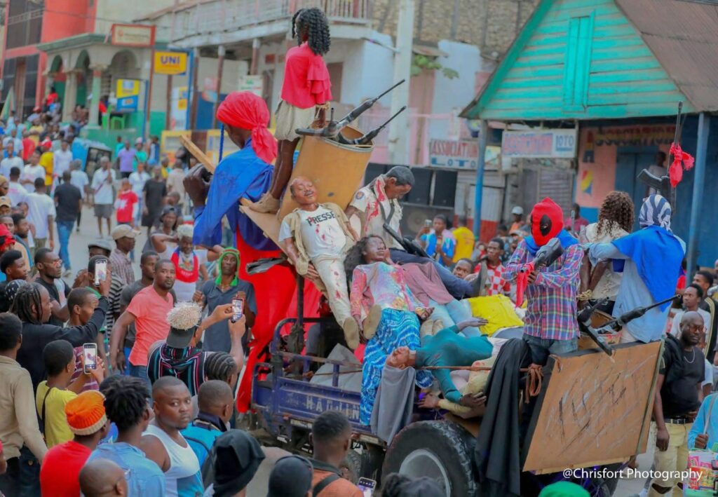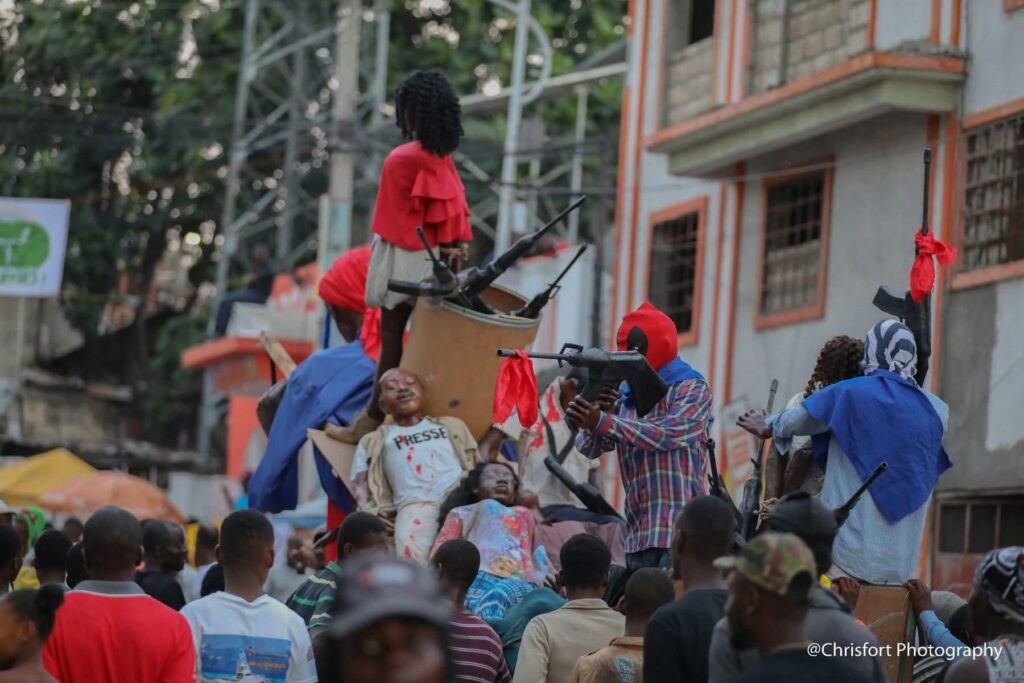 Dans un silence pesant, la foule avançait, suivant le cortège avec une gravité inhabituelle pour un carnaval. Ce n’était plus une simple fête, mais une marche funèbre pour un pays pris en otage par la violence.