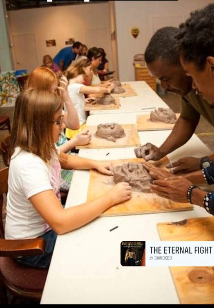 À travers son atelier, il façonne des figures qui réincarnent non seulement la richesse du folklore haïtien, mais aussi les multiples facettes de la société. Son regard d’artiste ne laisse rien inaperçu : il peint tout, du visible à l’invisible, du beau au tragique.